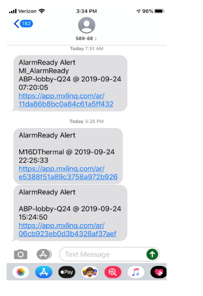 2. End user clicks on SMS link and is immediately directed to MxLINQ AlarmReady recent activity